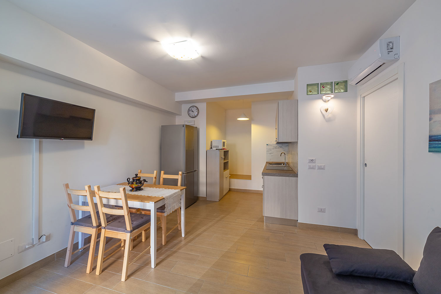 Appartamenti dotati di terrazzino privato e bagno privato, con doccia extra large. Completano la dotazione: frigorifero, cassaforte, aria condizionata, riscaldamento per inverno, wi-fi gratis, set di cortesia. Servizi/accessori inclusi all’interno dell’unità: (ad es. macchina caffè, tv smart, doccia/vasca… ecc ) bollitore, forno micronde condiviso. Minimo Pernottamento: Da 2 a 6 notti in base al periodo. EXTRA Pulizie finali 50€