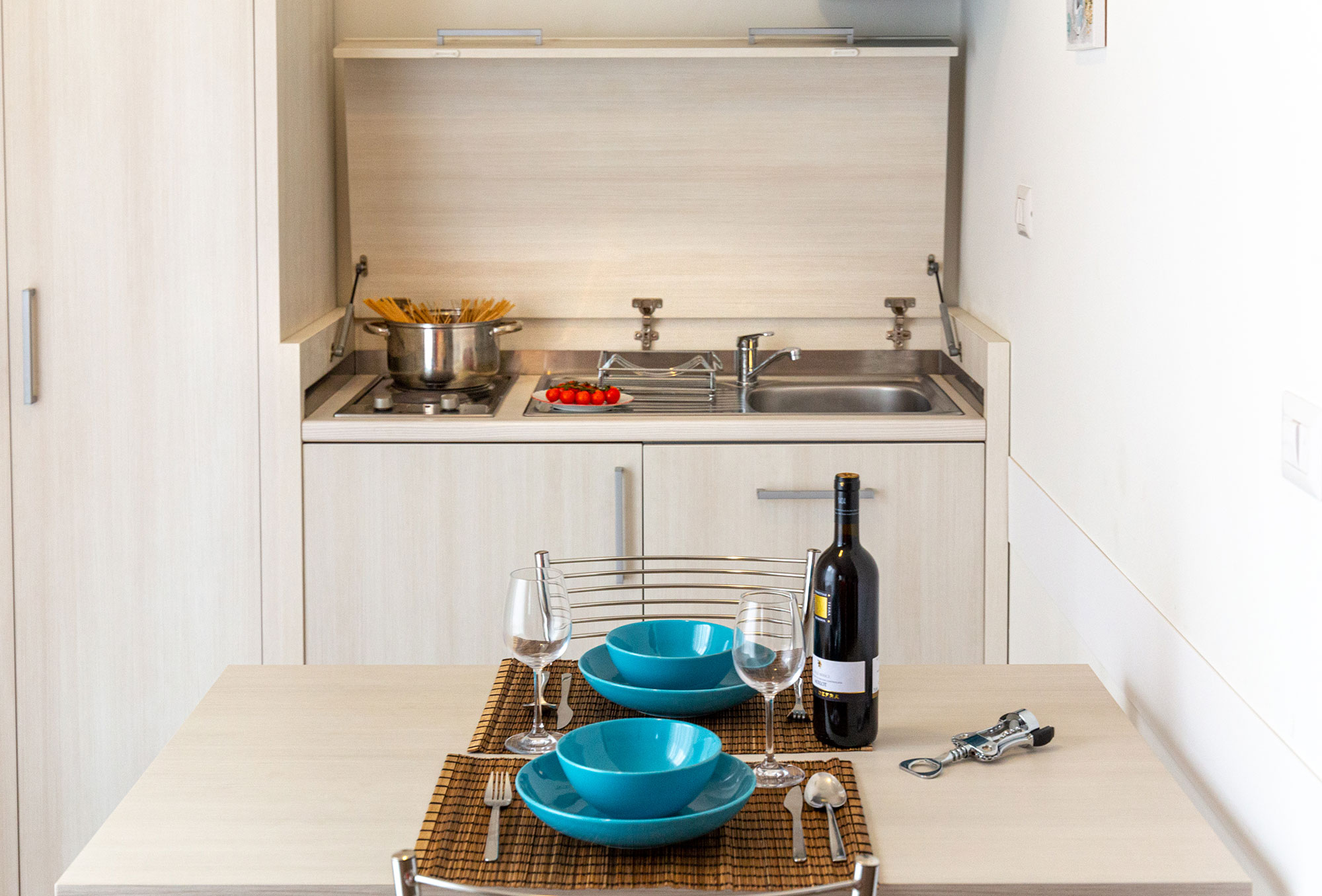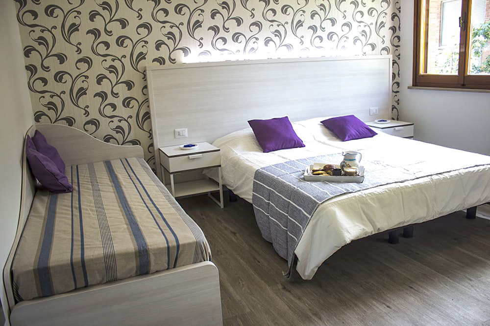 Sistemazione in ampia e confortevole camera di 28m² dotata di un attrezzato angolo cottura, terrazzino e bagno privato, con doccia extra large. Composta da un letto matrimoniale e un letto singolo. Vedi i servizi compresi Minimo Pernottamento: Da 2 a 6 notti in base al periodo. EXTRA Pulizie finali 30€